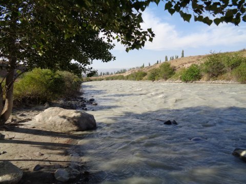 Det lave landområde omkring Bisjkek er intensivt  opdyrket. Vandet leveres fra bjergene med hjælp fra tyngdekraften. Gennem store kanalsystemer ledes og fordeles vandet, så alle bønder får, hvad de har brug for. Den slags anlæg er et godt levn fra sovjettiden.