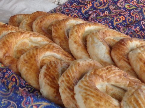 Kirgiserne bager fremragende brød, som holder sig friskt i mange dage. Billigt er det også, et sådant rundt brød koster typisk to kroner.