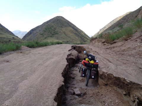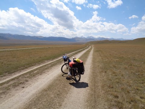 Dog viste det sig at være relativt nemt for mig at trække cyklen fri af de dybe huller, mens de firehjulede køretøjer nok ville få problemer. Resten af dagen havde jeg i hvert tilfælde sporet for mig selv, hvilket jeg satte stor pris på efter de mange dage på den trafikkerede vej langs Issyk-Kuls søbred.