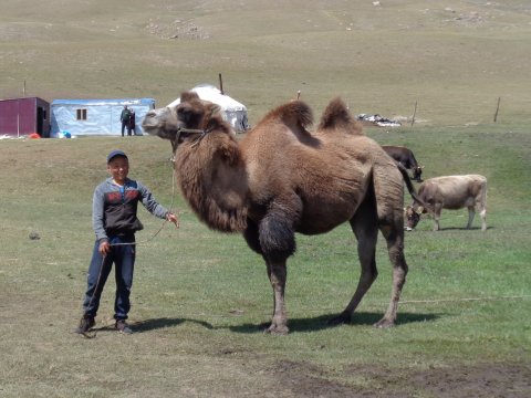 Lillebror har god grund til at være stolt af sit pragteksemplar af en baktisk kamel (det er dem med to pukler. Modsat dromedaren, som jo kun har en pukkel, men altså er en kamel). Da trafikken langs silkevejene blomstrede, var det dyr som dette (og i de højeste bjergpas yakokserne) der trak det tunge læs. Der er ikke mange tilbage på de kanter, jeg besøgte - små lastvogne klarer nu den lokale transport, og på de store afstande er silkevejene jo forlængst erstattet af luft- og søveje.