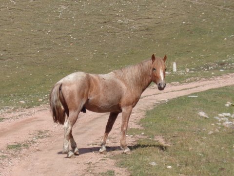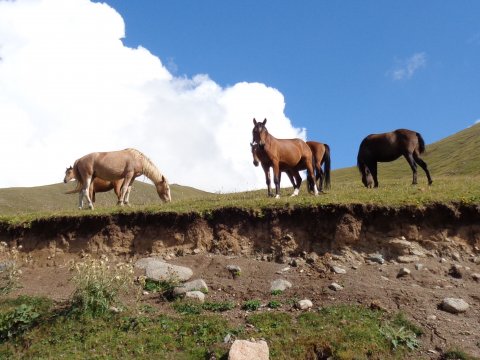 Flokke af heste luner sig i morgensolen. Det ser vildt ud, men helt vilde er de ikke, for de ejes af nomaderne, selvom de måske ikke ved det - altså hestene. De lever imidlertid det frie liv på de store græssletter, som kirgiserne kalder jailoos.