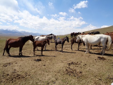 ...og atter heste. De kirgisiske nomader kan næppe forestille sig et liv uden heste.