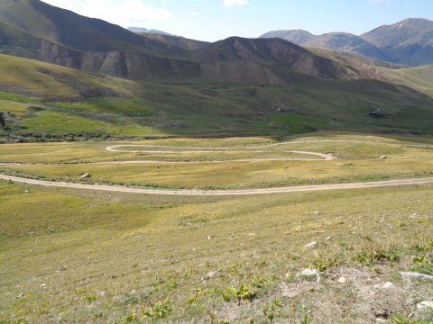 Vil du fra søen Issyk Kul, Kirgisistan store bjergsø, og stik sydpå, er det nødvendigt at krydse mindst et af flere høje bjergpas. Den lille vej op til passet Tosor - det pas jeg ville forsøge at nå - starter ved søbredden nær en landsby af samme navn som passet og bringer de vejfarende over bjergkæden Terskey Ala og ind i Arabel-dalen, hvor de kirgisiske nomader strejfer om i året luneste måneder. Vejen til passet har aldrig set en klat asfalt, alt er jord og sten hele vejen til toppen. Og ja, det er naturligvis netop det, der gør den attraktiv for cyklister eller fodfolk på eventyr med sans for en god udfordring. Veje uden forhindringer fører ingen steder hen. . .