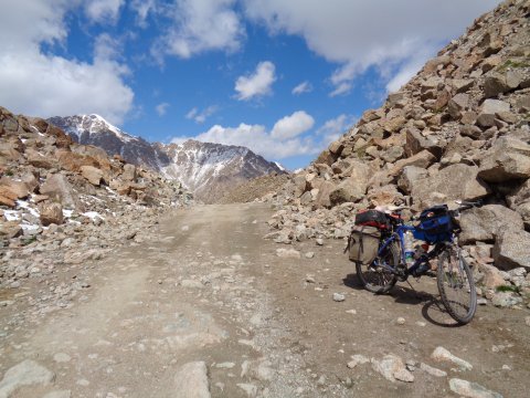 Få km længere oppe mødte jeg tre friske kirgisiske mandfolk på vej ned fra passet i en 4-hjulstrukket bil. De var netop stoppet for at indtage deres morgenmad, så da de så mig komme prustende, blev der hurtigt dækket op til en til. Deres lune kaffe, brødet og sardinerne faldt på et tørt og tiltrængt sted. De kunne lidt engelsk, så jeg fortalte dem, om det ødelagte spor længere nede, men det anfægtede dem ikke. Mennesker i mindre udviklede lande, bekymrer sig sjældent om forhindringer, før de rent faktisk støder på dem, og selvom attituden før var en del af vores kultur, har vi tilsyneladende glemt, at "hver dag har nok i sin plage". Eller som Storm P. ironisk udtrykker det: "Man bør tage sorgerne på forskud, for man ved jo ikke, om de dukker op".