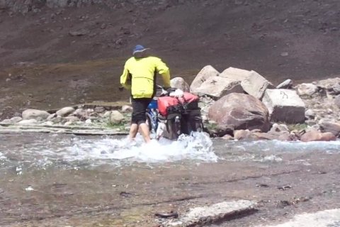Den morgen, jeg forlod Isyyks søbred, var himlen skyfri og dagen perfekt til min tur mod passet. Få dage før havde det imidlertid regnet kraftigt, og de store vandmægder havde fået dalbundens flod til at gå over sine bredder og løbe ud på vejen, hvor den havde gravet dybe furer i sporet. Synet så dejligt spændende ud for min videre færd mod passet.