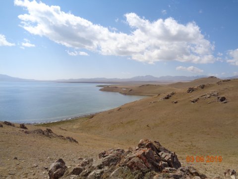 Sidste strækning på frihjul mod søen forløb ikke helt uden dramatik. En ophidset hyrde til hest forsøgte gentagne gange at blokere mig vejen, ved at tvinge hesten ind foran min cykel. Hvad han i grunden ville mig, tror jeg ikke, han selv viste, for han var stiv af vodka og svingede faretruende i luften med en næsten tom flaske. Jeg foreslog med tegn, at vi skulle dele den sidste sjat vodka i flasken, og det indfald ramte tydeligvis noget, han forstod som en venlighed, så langsomt ændrede han attitude. Efter 10 minutter og en sjat af den vodka, han havde spyttet og savlet i, gav vi hinanden hånden på en facon, han troede var venskabelig, og lettet gled jeg det sidste stykke ned til søbredden.