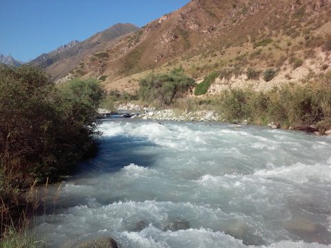 Efter den lille by Karkol, som ligger ved søens sydøstlige bred, kører jeg for alvor op i bjergene. Det bliver ad stenede stier og dyrespor, et sandt eldorado for mountainbikere. I første omgang vil jeg udforske den smukke Karakoldal. Senere er det min tanke at opsøge floden Naryn, som jeg så vil følge på dens løb mod vest.