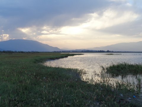 Issyk-Kül ("varm sø"), en af verdens største højlandssøer, beliggende 1600 m.o.h.