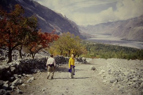 Vejen, der forbinder Gilgit med byen Skardu i provinsen Baltistan er, om muligt, endnu mere dramatisk end vejen langs Hunzafloden. Vi nyder alle tre at suse nedad og rundt i de skarpe sving højt over Indusflodens tordnende vandmasser. Jørgen er frisk igen, og vi er nu på vej retur til Gilgit for sidste gang. Der er sket meget de seneste 10 dage.