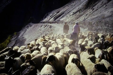 Kort efter Sost forsvinder vejen ind i en smal kløft, som skærer sig lodret gennem Karakorams bjergvægge. Solen når kun slugtens bund få timer dagligt. Dybt under os kan vi hører Hunza-flodens brusende vandmasser. De sorte, nøgne klipper tårner sig op omkring os. Navnet Karakoram er af tyrkisk oprindelse og betyder ‘sorte, smuldrende bjerge’. Det var da også tyrkiske købmænd, der langt tilbage i tiden drev lange karavaner af kameler gennem denne lidt dystre ørken af sten og grus videre ad Silkevejen mod byen Xian i det vestlige Kina.