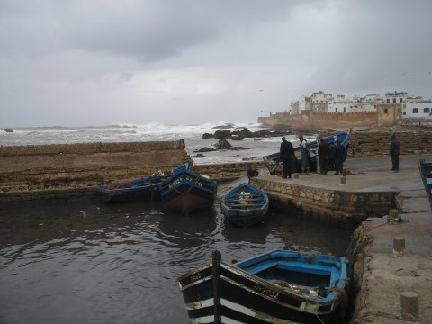 I Marokko på Afrikas vestkyst ligger den lille forblæste fiskerby Essaouira. Byen var kendt i Rom allerede i det første århundrede efter vores tidsregning, da der på stedet lever en lille søsnegl, som man udvandt purpur farvestof af til indfarvning af fine klæder til den romerske elite. I dag lever byen af tourister.. og fisk. Havnen er byens samlingspunkt, hvor der er livlig aktivitet døgnet rundt.