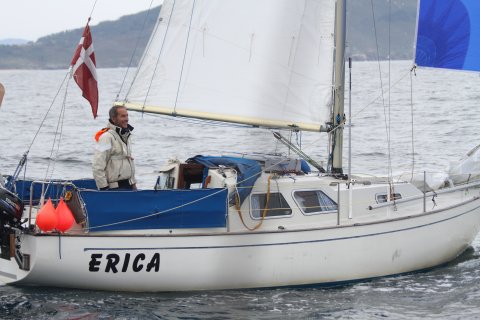 Sejlerhilsner fra hele besætningen på det gode skib S/Y Erica, dvs. kaptajnen, styrmanden, navigatøren, snedkeren, elektrikeren, kokken og kahytsdrengen